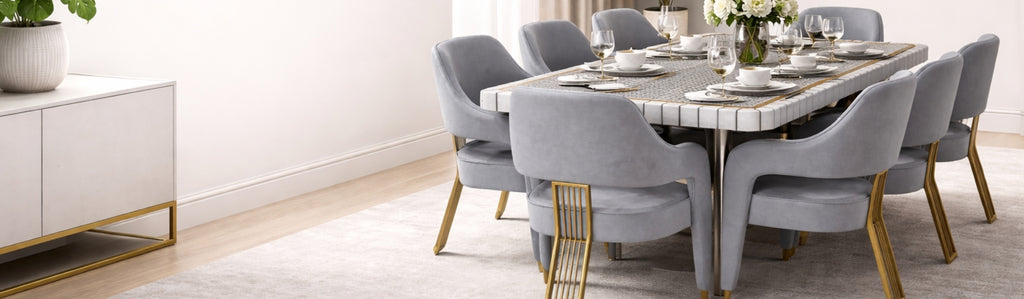 Epoxy 8-Seater Marble Dining Table Set Premium SS Base Dining Furniture